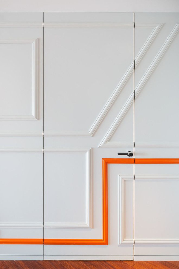 ▲常用作門套的木條在這里被設計師重組用作裝飾。