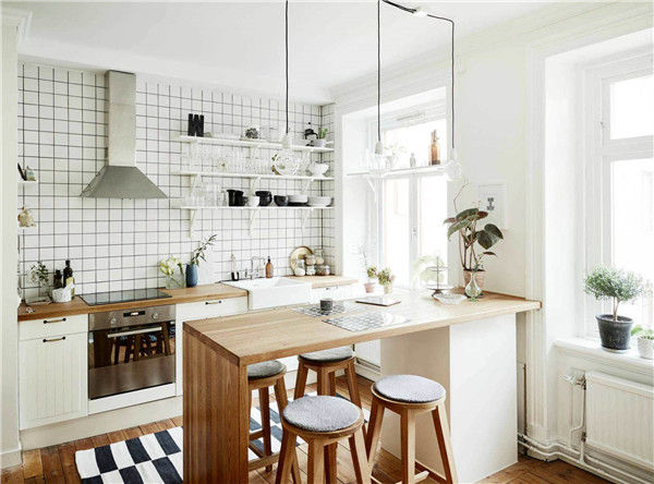 如果廚房本身空間比較寬敞,不妨在設計櫥柜的時候預留出小吧臺,做飯、用餐都可以在這里進行。