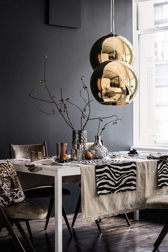 ? ? ? ?深藍色的墻漆和黃銅的組合,沉穩大氣不輕浮。當家里刷了深色墻的時候,不知道搭配什么顏色的家居飾品,挑黃銅,挑黃銅,挑黃銅!