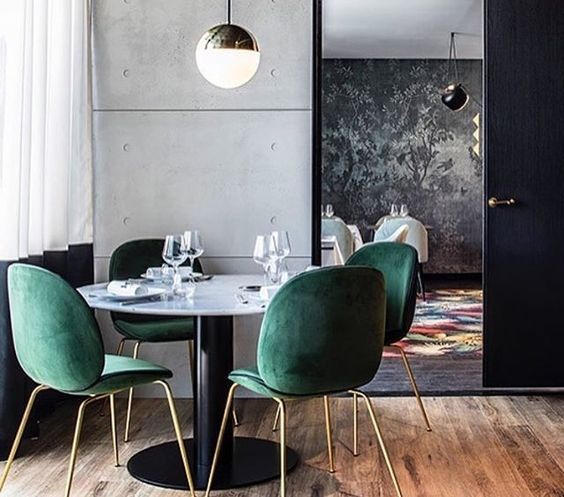 ? ? ? ?珠寶綠、珠寶藍這類復古顏色加上天鵝絨自帶貴氣的材質在空間里使用時,和黃銅家具是絕配,透著一股20世紀20年代的輕奢享樂主義感。