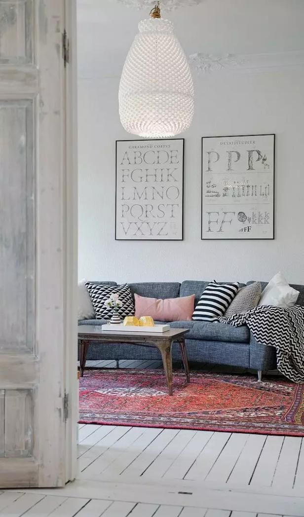 ? ? ? ?▲古舊感的水泥地鉆和沙發(fā),恰到好處的印花抱枕和墻上的裝飾畫相得益彰,成為整個(gè)空間的點(diǎn)睛之筆。