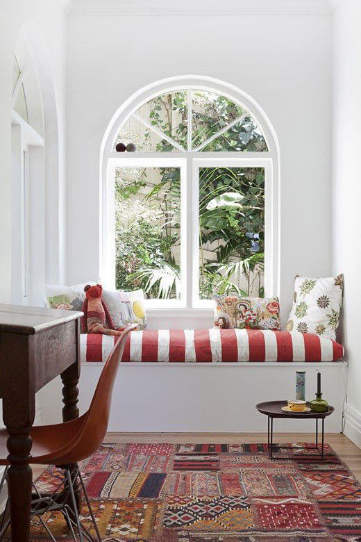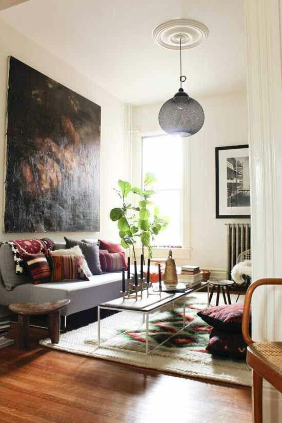 ? ? ? ▲葉子紋路和多種圖案的抱枕,與波西米亞風(fēng)格的地毯交相輝映,田園風(fēng)鋪面而來。