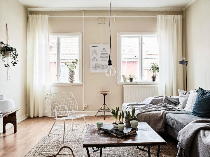 和白墻接近的素色窗簾會令小戶型看起來簡單明快,減少壓抑感;在大戶型里更是顯得落落大方。