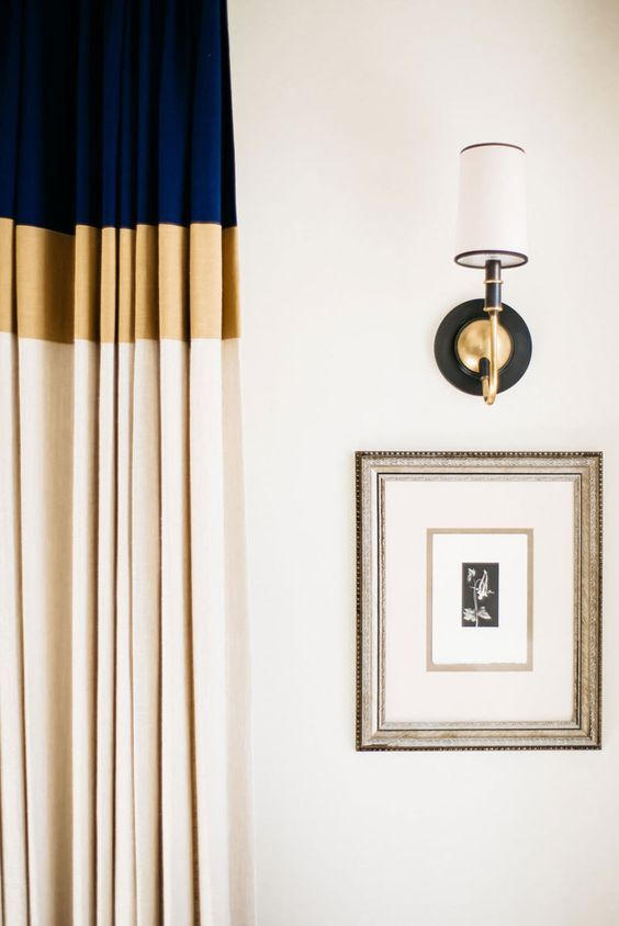 要想營造典雅的氣氛,可以學習下這個例子。雖把深色塊移到了上面空間,但面積把握得好,只占大約簾頭處的位置,也取得了不錯的效果。