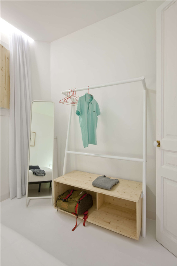 臥室簡(jiǎn)潔明了,一眾物品一應(yīng)俱全。礙于空間的局限性,將衣柜等大物件家具換成簡(jiǎn)單的晾衣架+木箱,加上一面穿衣鏡,節(jié)省空間的同時(shí)滿(mǎn)足生活需求~盡管空間面積不大,但還是讓一張大床占據(jù)大部分區(qū)域,柔軟、舒適,呵護(hù)健康睡眠。