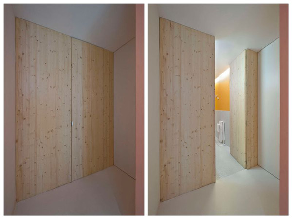 隱形門(mén)的設(shè)計(jì),打開(kāi)即別有洞天,妙趣十足。這種設(shè)計(jì)將“門(mén)”這個(gè)概念虛無(wú)化,由此產(chǎn)生新的理解。重要的是,衛(wèi)生間的私密性得到了有效保護(hù),當(dāng)然,前提是照明必須做好!