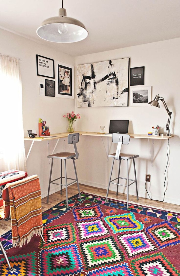如果家中不只一人需要使用書桌,遵循同樣的思路,一人一面桌子,互不打擾,還能陪伴彼此,增進感情。