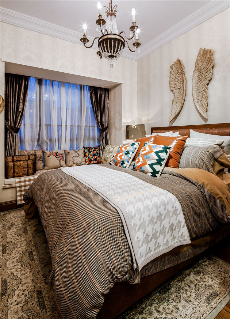 通過對家具的陳列,來表達出一種新的生活方式方向來進行嘗試,軟裝、布藝、裝飾等等一切,都以業主的需求為著力點,在強調美式風情及奢華體驗的同時,塑造出一個舒適浪漫的臥室空間。