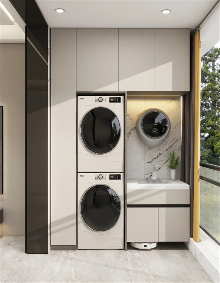 家政區(qū)的位置可以選在廚房、衛(wèi)生間、陽(yáng)臺(tái)、玄關(guān)走廊、儲(chǔ)物間等處,最好離水池近一些,縮短家務(wù)動(dòng)線。