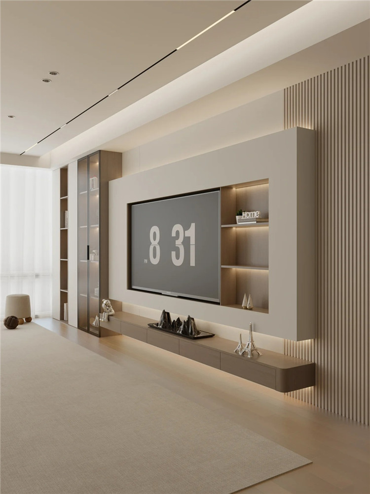 尤其是電視柜,強(qiáng)烈建議提前預(yù)留一個(gè)空間,將插座、電線等全都隱藏,減少落塵點(diǎn)。