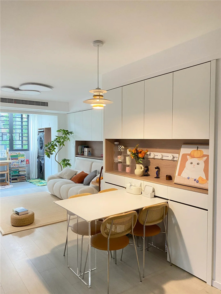對(duì)于空間不大的餐廚區(qū)域,常常會(huì)遇到收納空間不足的問(wèn)題。而如果選擇做開(kāi)放式廚餐廳,又難以避免油煙的侵?jǐn)_。