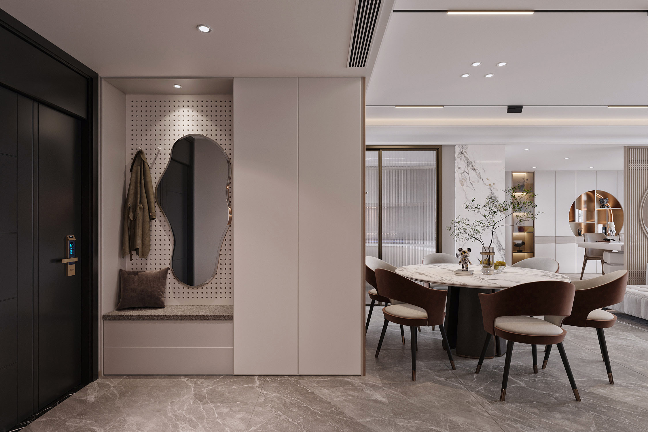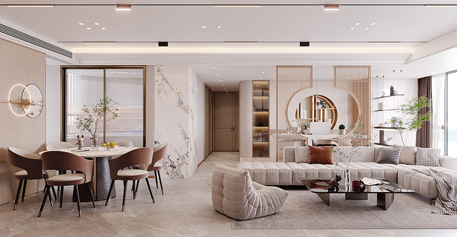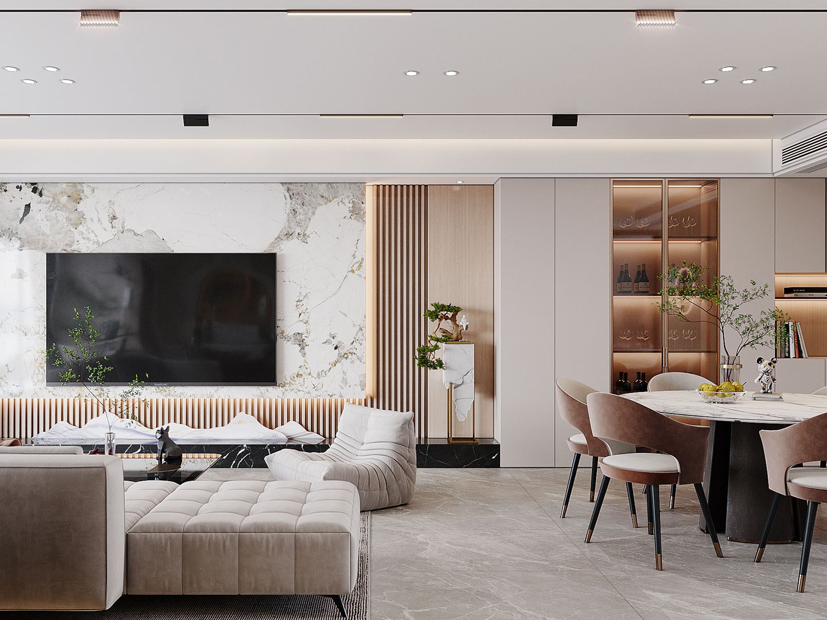 案例簡介:本案例業(yè)主夫婦對生活充滿了熱情,偏愛現(xiàn)代簡約風(fēng)的文化,因此在進(jìn)行家居設(shè)計的時候希望設(shè)計師能夠使用最簡約的元素打造出格調(diào)感。而在與業(yè)主深入交流后,設(shè)計師了解到這對夫妻平常最大的興趣愛好就是讀讀書,因此在進(jìn)行空間規(guī)劃的時候預(yù)留了一個專門的書房。同時,整體的裝修風(fēng)格選為現(xiàn)代輕奢風(fēng),以滿足業(yè)主的審美需求。