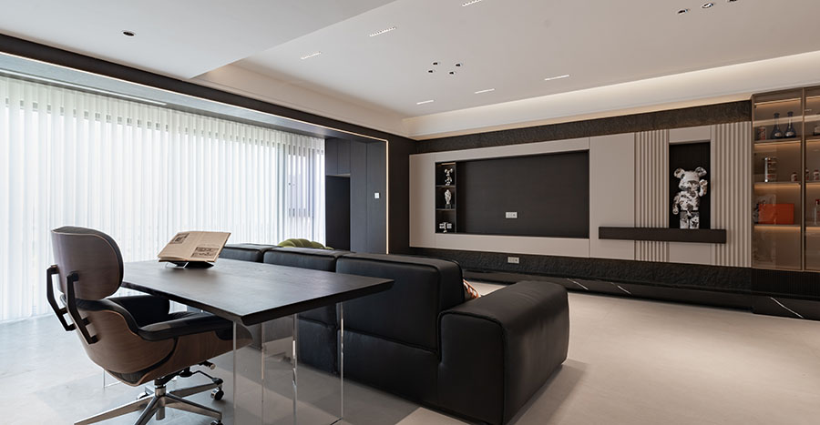 為提升空間利用率,書房空間選用了大量收納設(shè)計。同時,借助大面積的窗戶引進(jìn)自然光,提升書房使用舒適度。