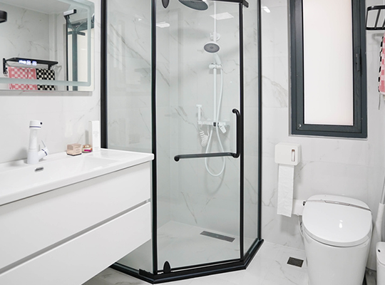 半圓弧的玻璃滑門既可以起到干濕分離的作用,又為衛(wèi)生間增添了一抹藝術(shù)氛圍。
