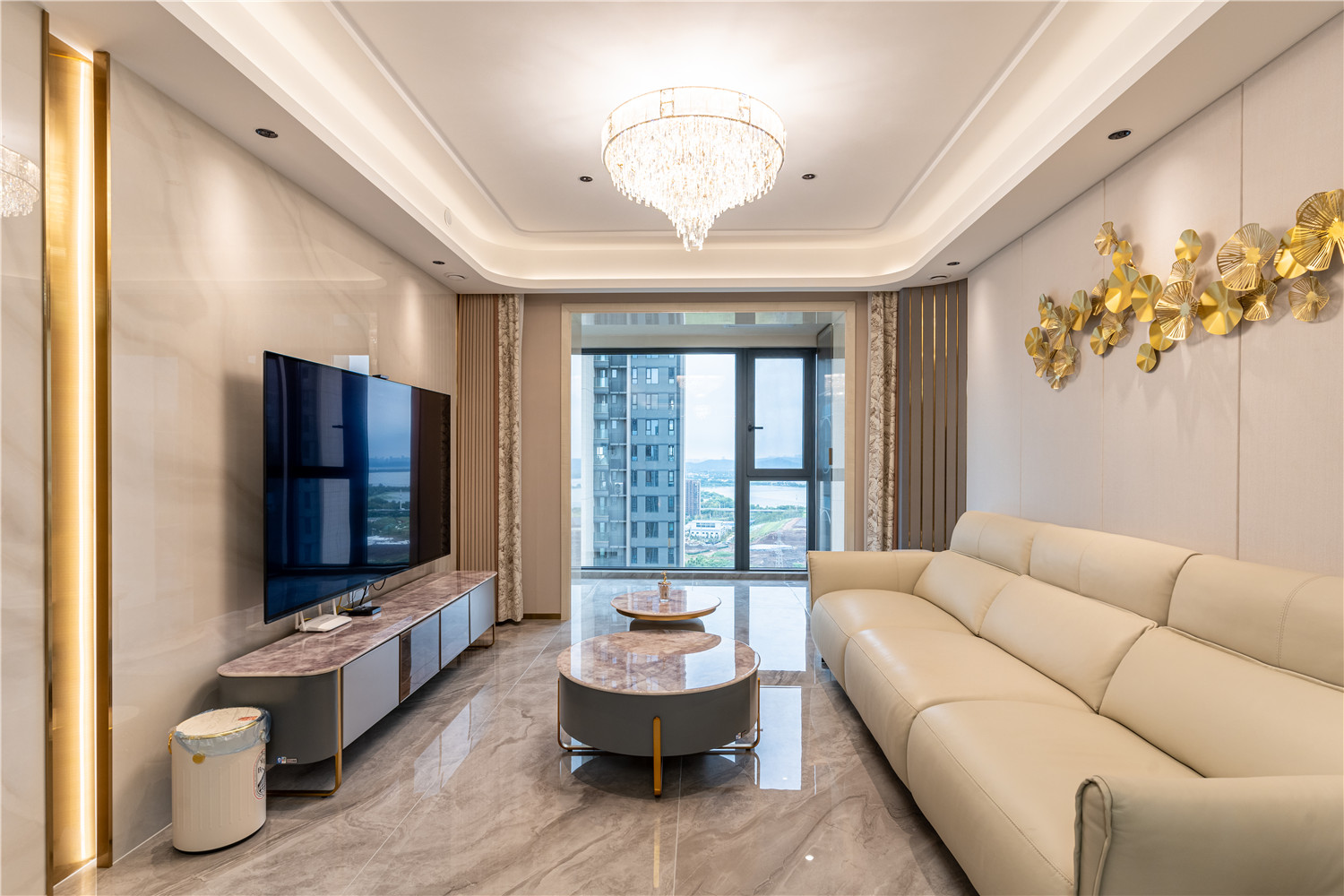 這是一套位于東湖天下的180㎡四居室房屋,空間面積做大且戶型結構相對沒有太多瑕疵,因此在設計時無需在戶型空間的改造上做過多“糾纏”,以業主及其家人的使用需求為主即可。以不同材質的地面材料為空間隔斷,能夠讓整個房屋更顯緊湊合理。為讓各個功能空間更具銜接感與一直性,不同的功能空間使用了相似的元素或者色彩進行裝飾,以從視覺上保障整個房屋空間的和諧美。