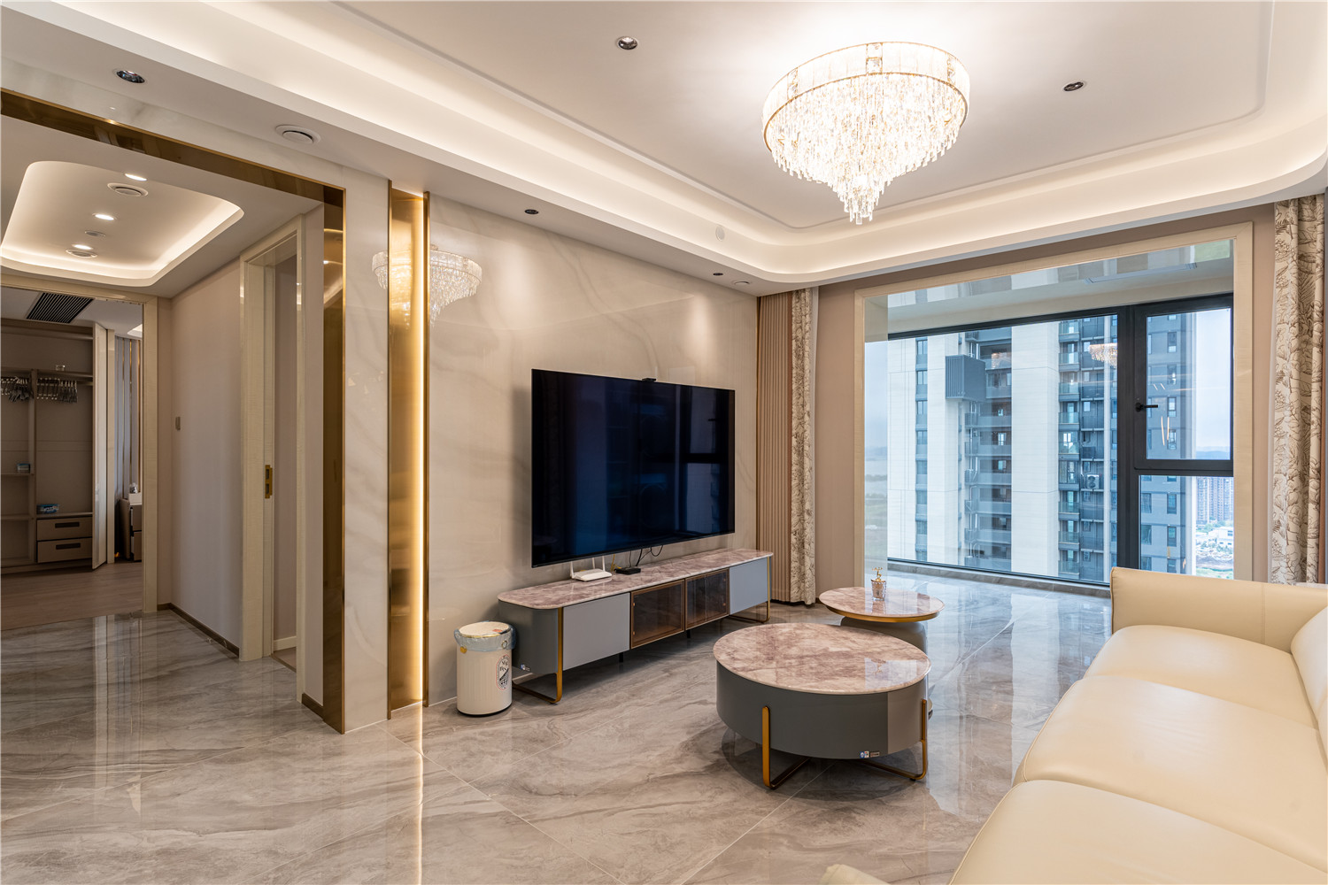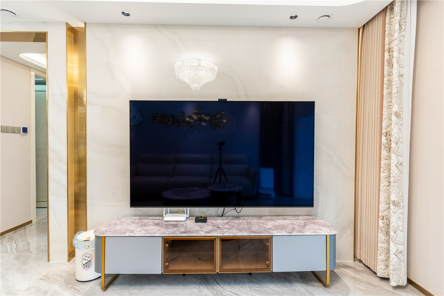 臥室空間邂逅浪漫紫色,時尚高雅的軟包設計不僅增添了隔音效果,也散發出優雅古典的歐式氣息,電視機的融入凸顯出主人對高品質生活的追求,傳遞出舒適智能的歐式生活品質。
