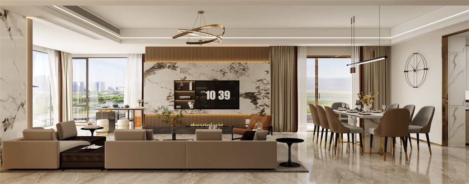 重新排布家居空間的功能形式,矯正其表現形態以完善公共區域的融洽相處。通過客餐廳一體化結合餐島一體的設計,令家人間的互動更為親密直接。同時,精細調配空間需求,確保功能與居住舒適感達到完美平衡,營造張弛有度的家居氛圍。
