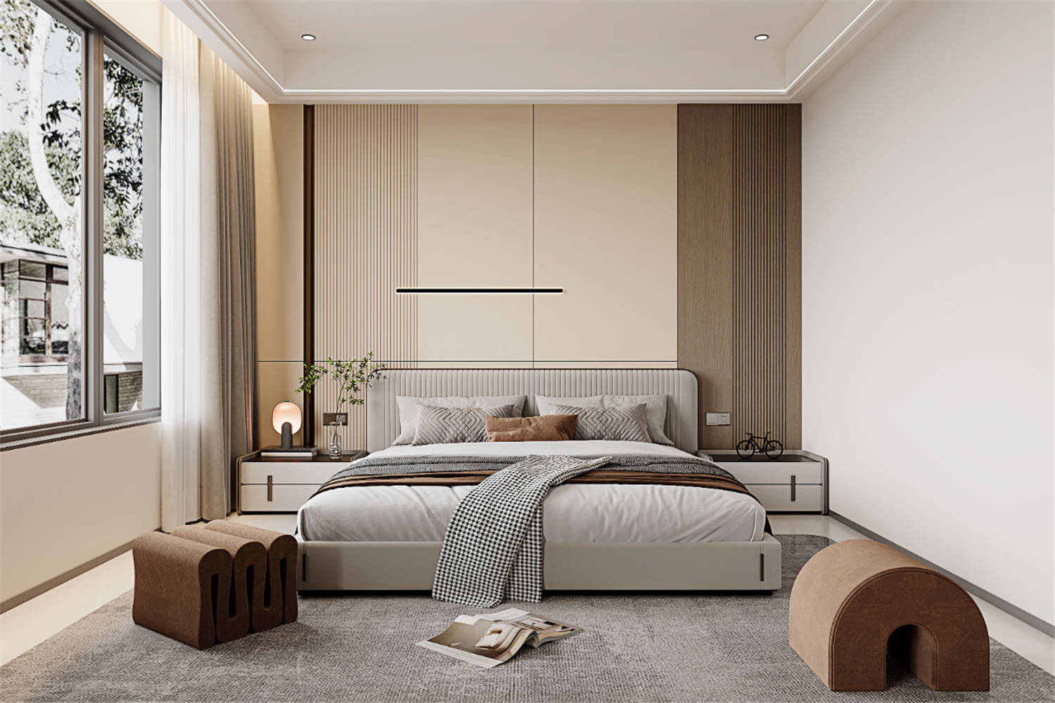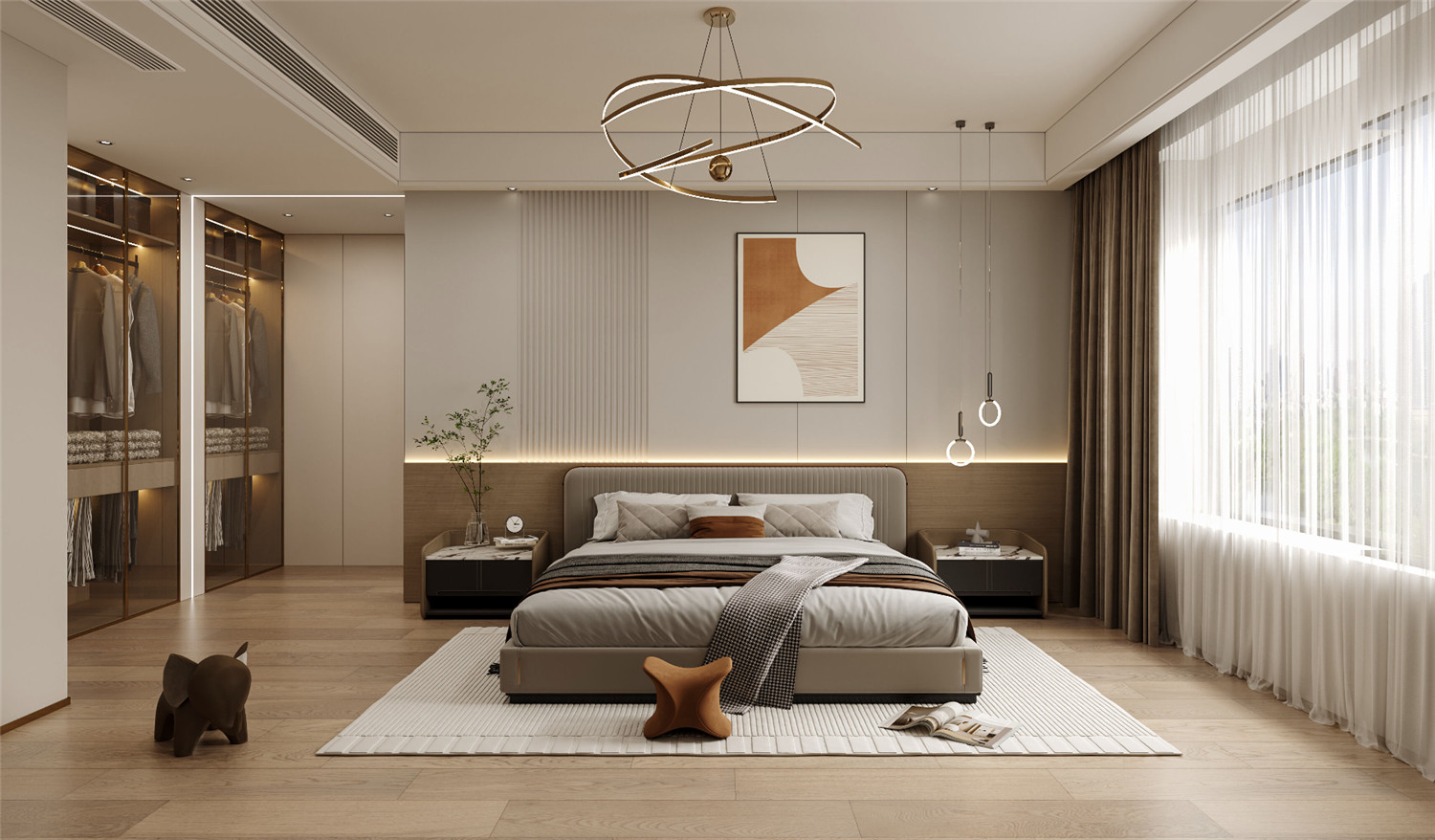 床尾融入獨立衛浴空間,通過巧妙的層次感設計,將各大功能區劃分得井井有條,完美塑造出獨具魅力的生活質感,令人陶醉。