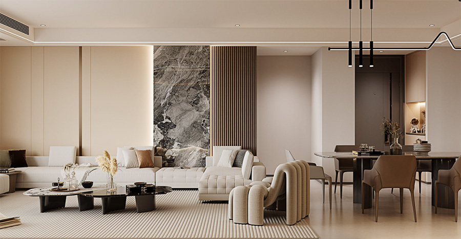 家居生活的柔軟溫和之處,藏匿于生活的點滴細節之中。沙發如同云朵般柔軟,輕柔地擁抱著每一個靜坐其上的人,給予他們無盡的舒適與寧靜。