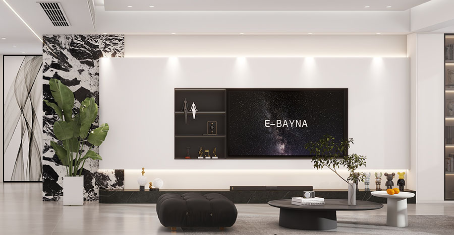 天然石材作為地臺,與懸浮電視背景及燈線精妙融合,于靜謐中流露藝術韻味,巧妙平衡休閑與雅致,構筑出別具一格的生活美學空間。