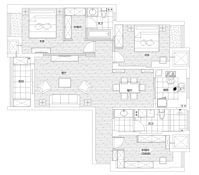 世茂錦繡長江這套四居室的住宅面積大約在220㎡左右,整個戶型結(jié)構(gòu)十分方正平整,空間規(guī)劃沒有太大難度,設計師按照業(yè)主的需求將休憩空間設置在距離入戶門最遠的區(qū)域,以提升空間的私密感。同時,為滿足女主人的起居搭配使用需求,單獨劃分出一塊衣帽區(qū)域,以提升整體的生活品質(zhì)。整個空間的軟裝使用了大量的中式元素,以強調(diào)復古典雅的輕奢優(yōu)雅氣息。