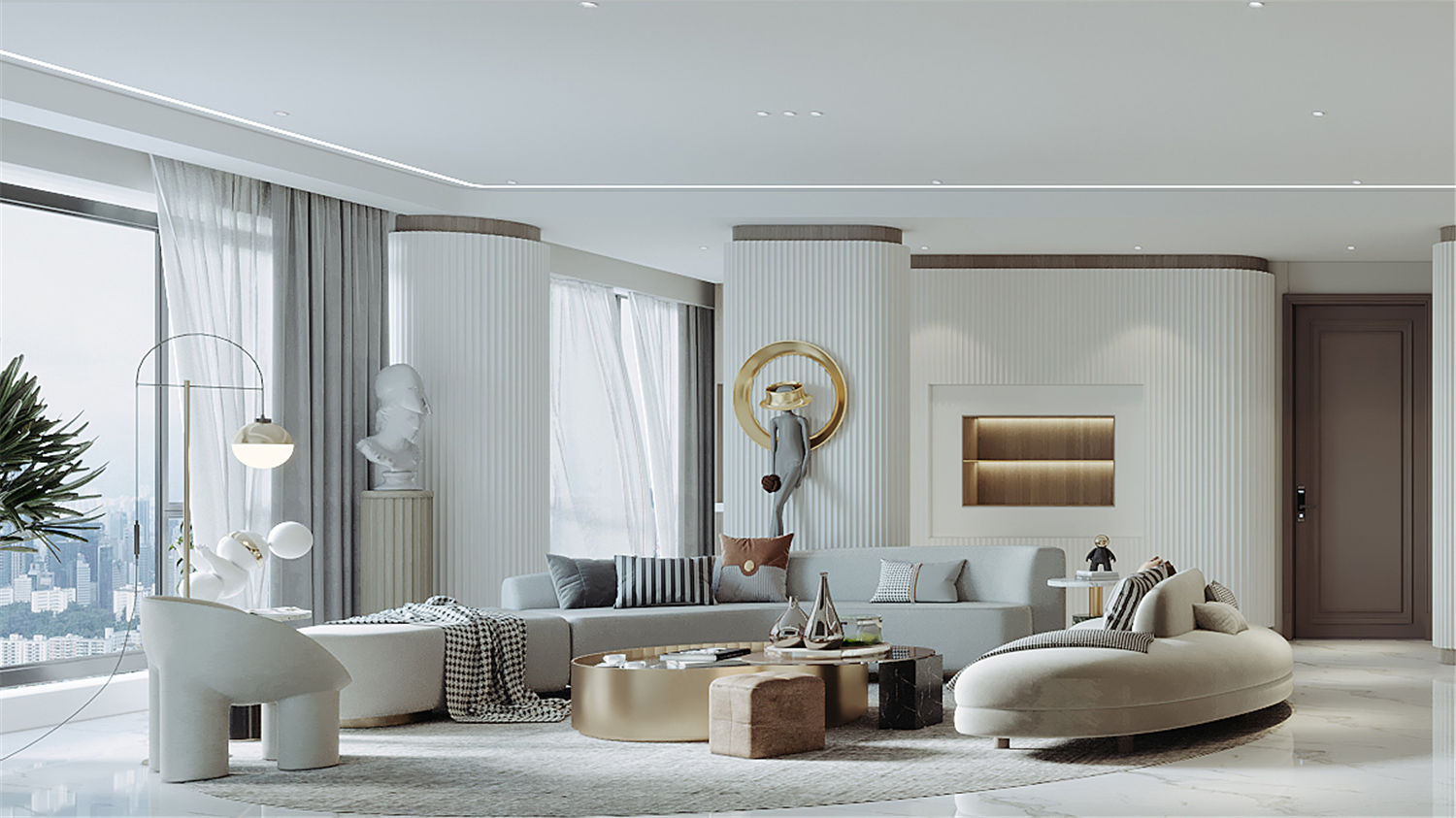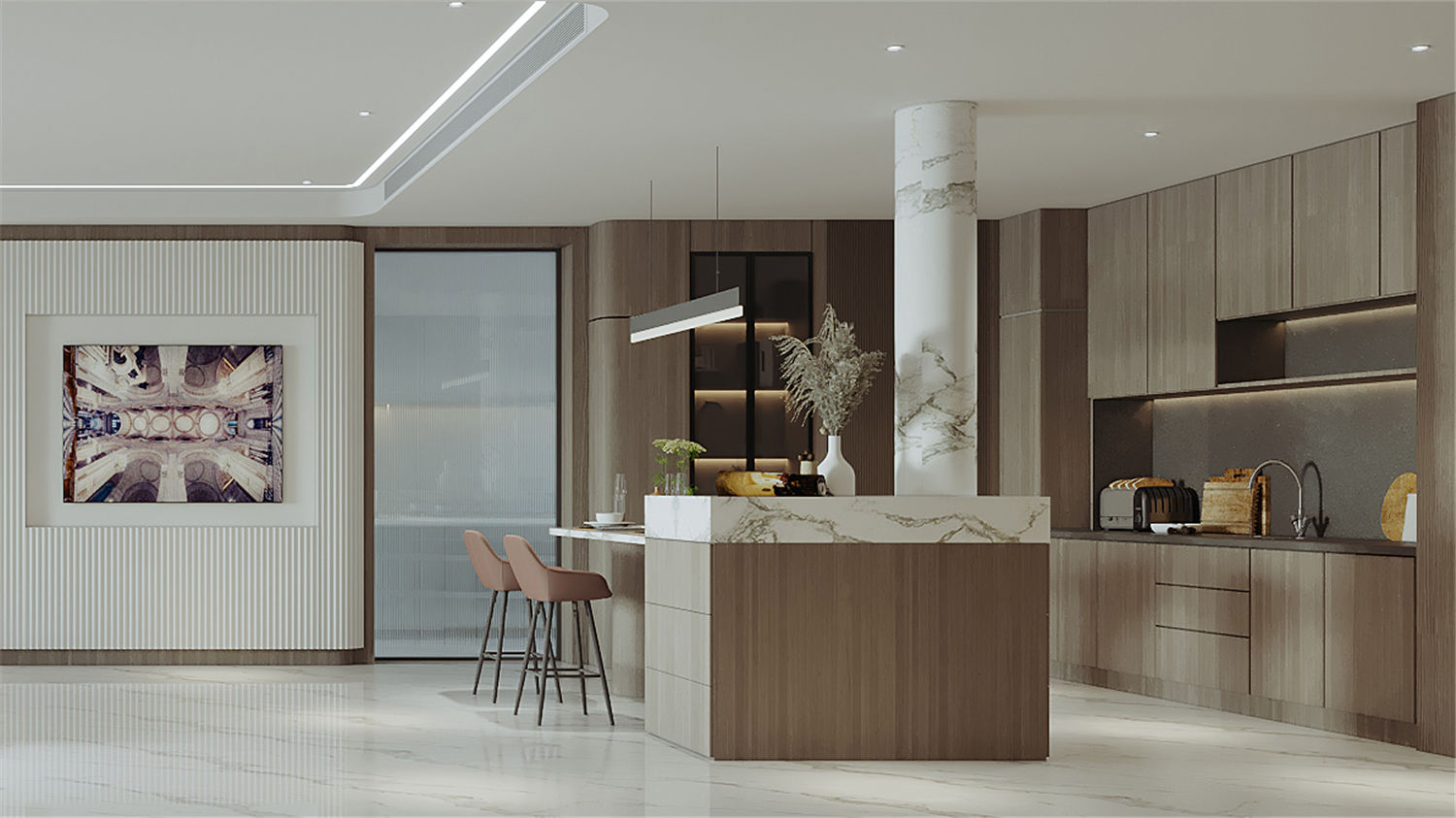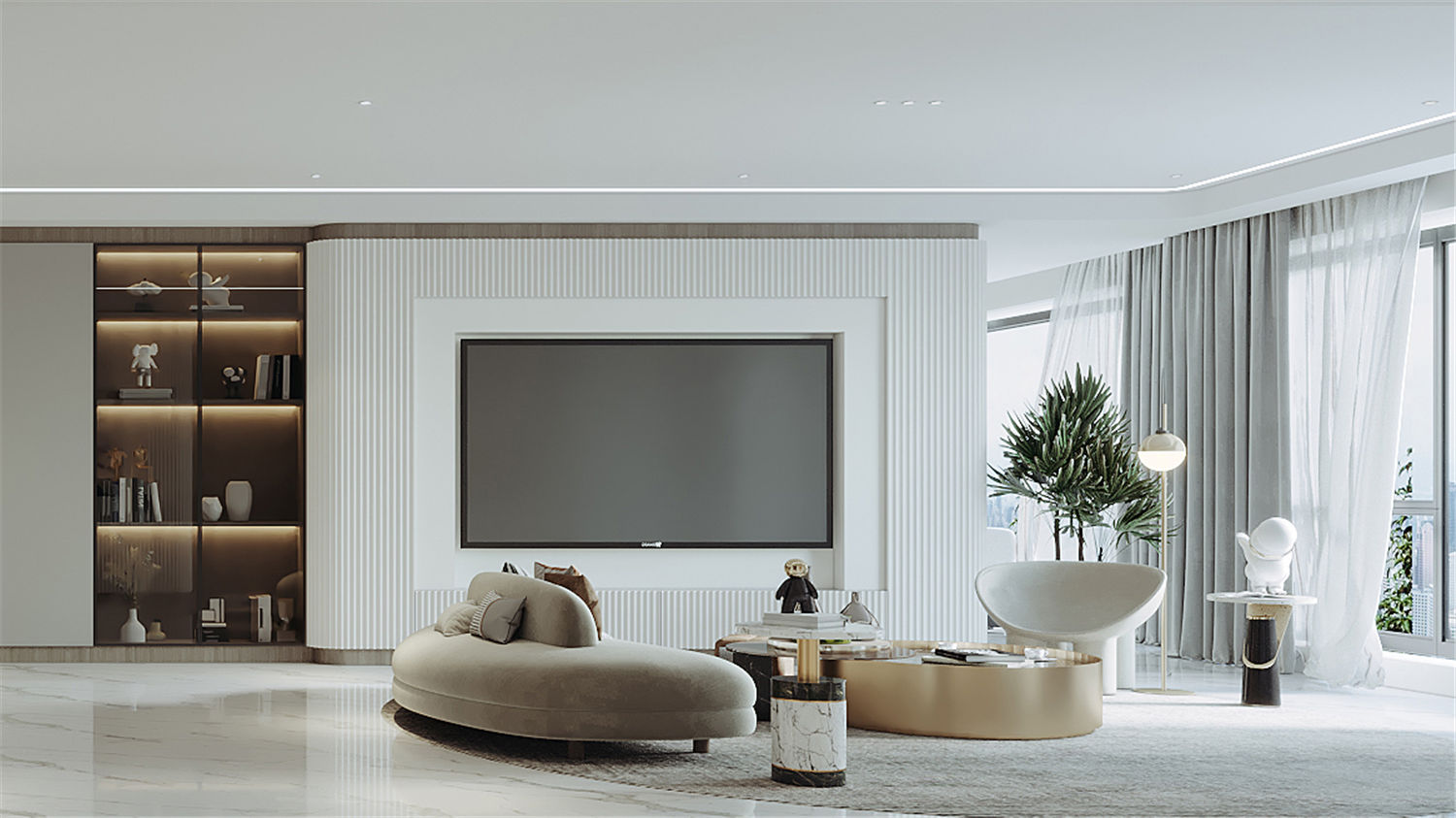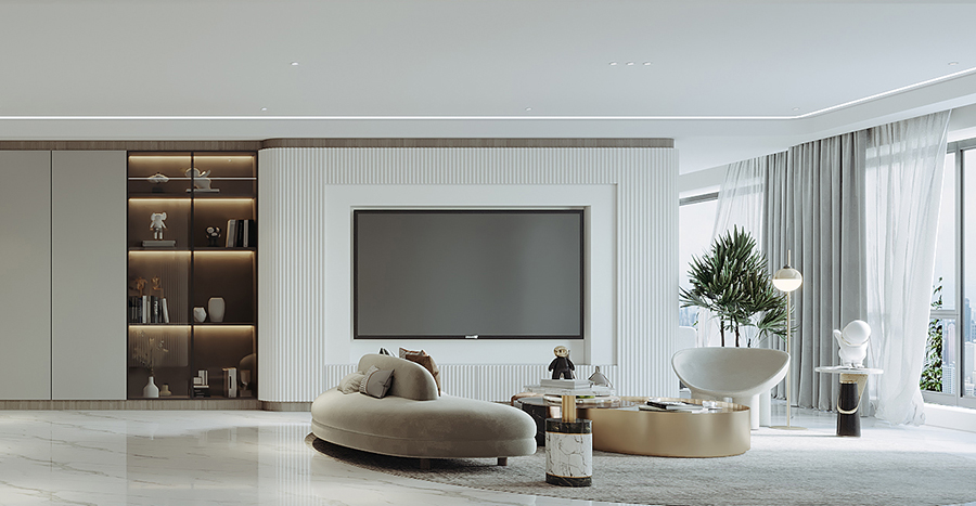 可以區(qū)域借助大理石大面打造結(jié)構(gòu)感,并利用高低差滿足日常坐臥需求,現(xiàn)代時尚感濃烈。