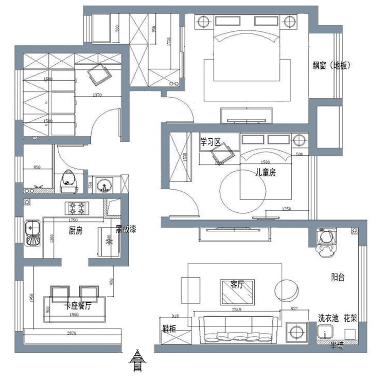 案例介紹:本案例業(yè)主為一對年輕的夫婦,帶有一個(gè)剛上幼兒園的小朋友,因此業(yè)主的設(shè)計(jì)需求是將空間進(jìn)行合理的規(guī)劃設(shè)計(jì),以滿足一家三口的使用需求,同時(shí)為孩子規(guī)劃出一片學(xué)習(xí)、玩樂的小天地,以保障孩子能夠健康快樂的成長。設(shè)計(jì)師依照業(yè)主的想法選用了簡約而又明快的北歐風(fēng)裝飾空間,同時(shí)在家居空間中多個(gè)區(qū)域點(diǎn)綴上帶有童心的裝飾,以保障房屋能夠更好符合年輕業(yè)主及小朋友的審美。