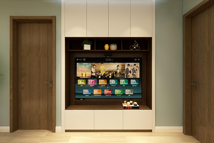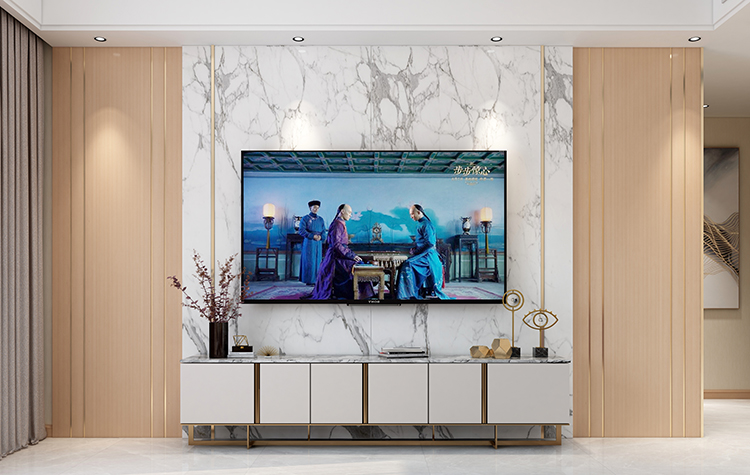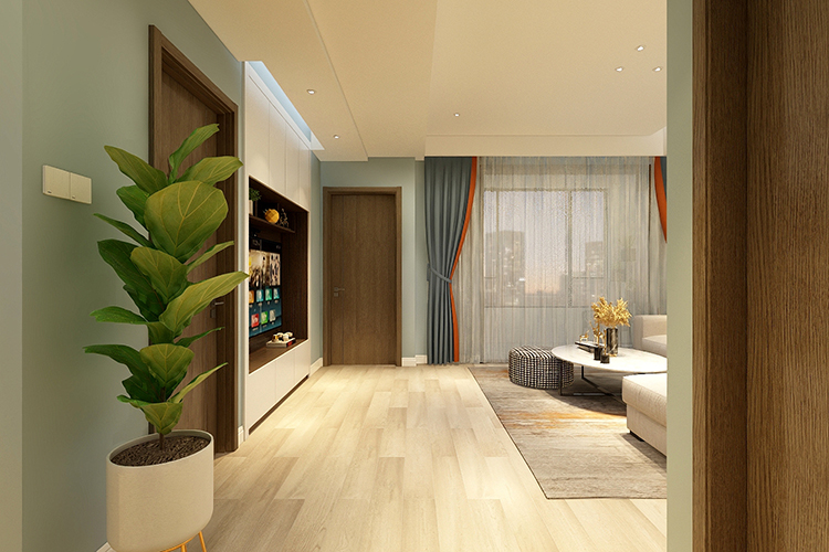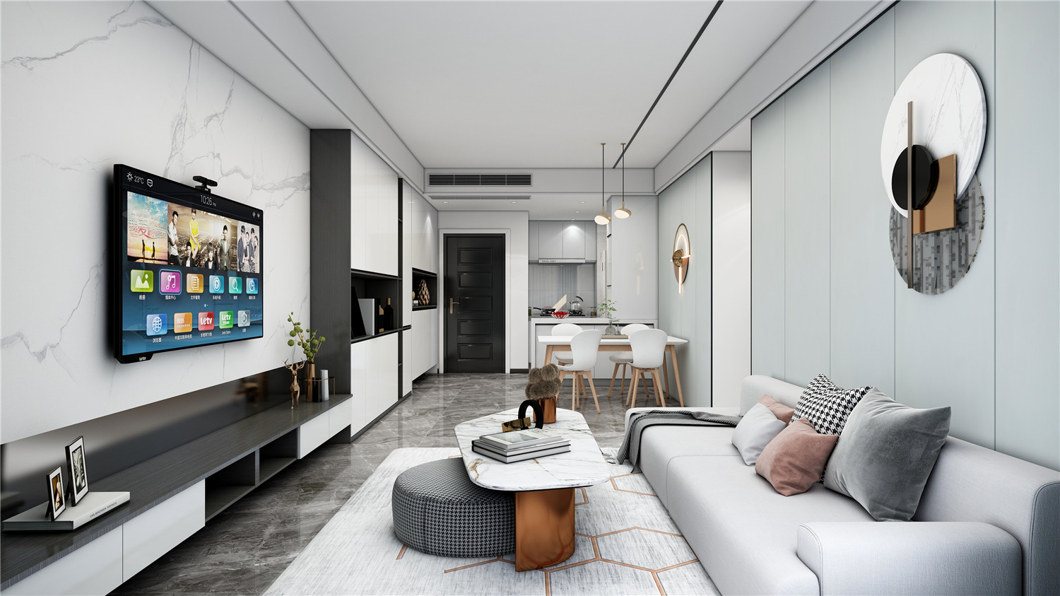 由于客廳區(qū)域的寬度并不寬,因此設(shè)計(jì)師在對客廳進(jìn)行設(shè)計(jì)的時(shí)候選用了相對比較簡約的元素及簡潔的色彩,以從視覺上起到放大空間作用。整個(gè)空間除了縱向墻面裝飾外,沒有其他任何裝飾點(diǎn)綴,有效保障了空間的整潔感。