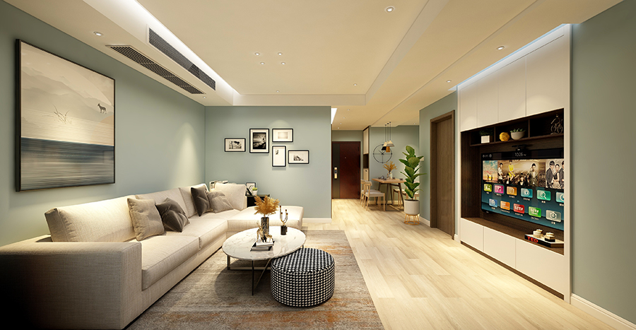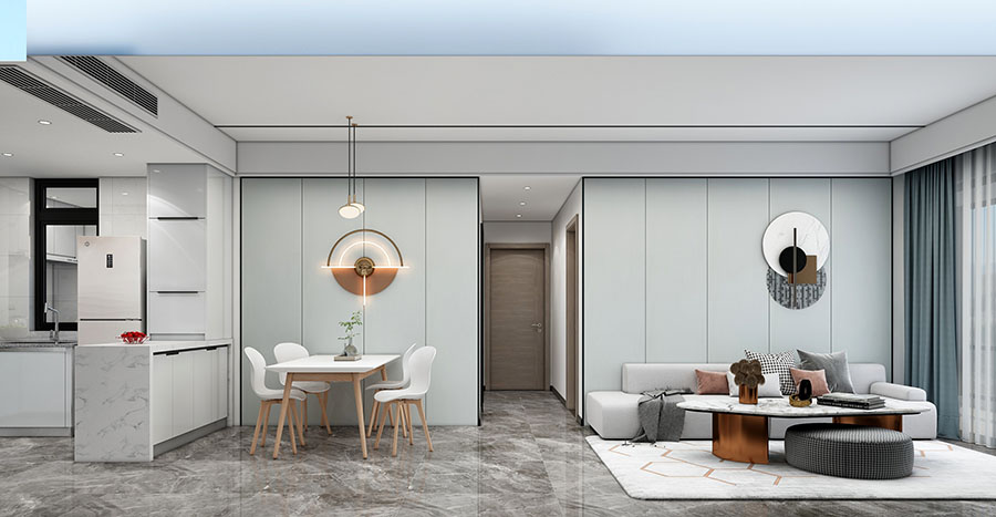 案例介紹:本案例業(yè)主為即將結(jié)婚的新婚夫妻,二人在婚前購置了這套房,但是由于工作繁忙,因此選擇將所有的工程專業(yè)的人士來負(fù)責(zé),而他們的要求就是能夠化解空間狹窄劣勢,同時(shí)營造出一種喜慶而又不落俗套的個(gè)性化氛圍。設(shè)計(jì)師按照業(yè)主們的需求選擇了輕奢風(fēng)作為家裝風(fēng)格,搭配以各種細(xì)節(jié)感十足的裝飾,以在無形之中強(qiáng)調(diào)貴氣與喜慶。