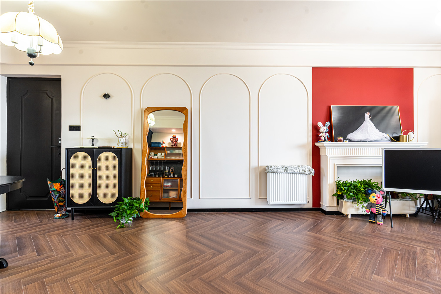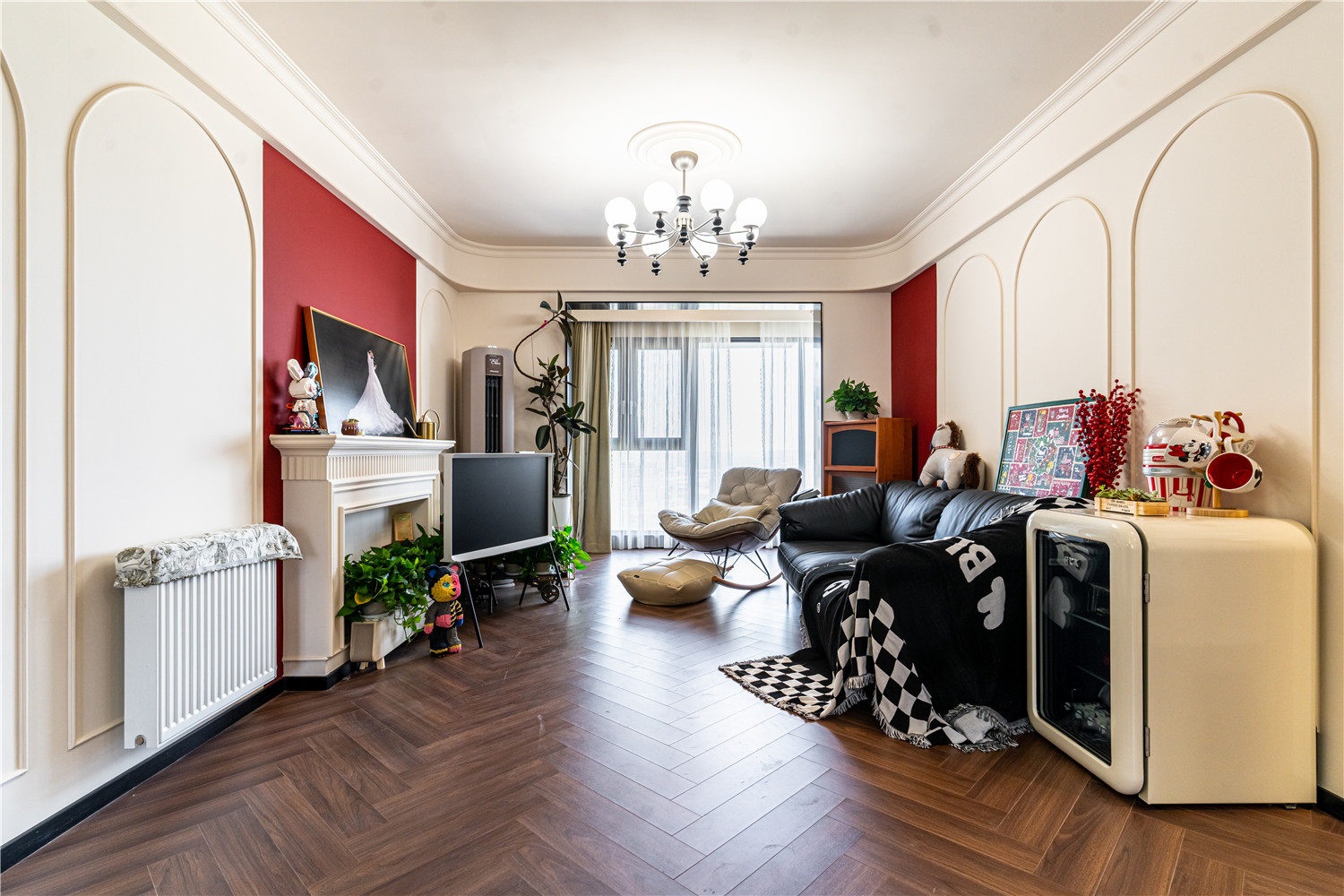 案例簡介:色彩明亮的客廳,暖冬的時候陽光灑滿整個客廳理想空間,質地柔軟的沙發,立體感極強的裝飾立面,陽光穿透灰色的紗簾灑落在橡地板上,顯現出無盡的溫暖與明朗,讓房子的主人更加舒適享受生活帶來的幸福時光。放屋里每一處的軟裝都代表了新步入婚姻的新人對美好生活的向往,每一處都很溫馨。