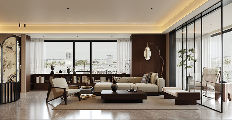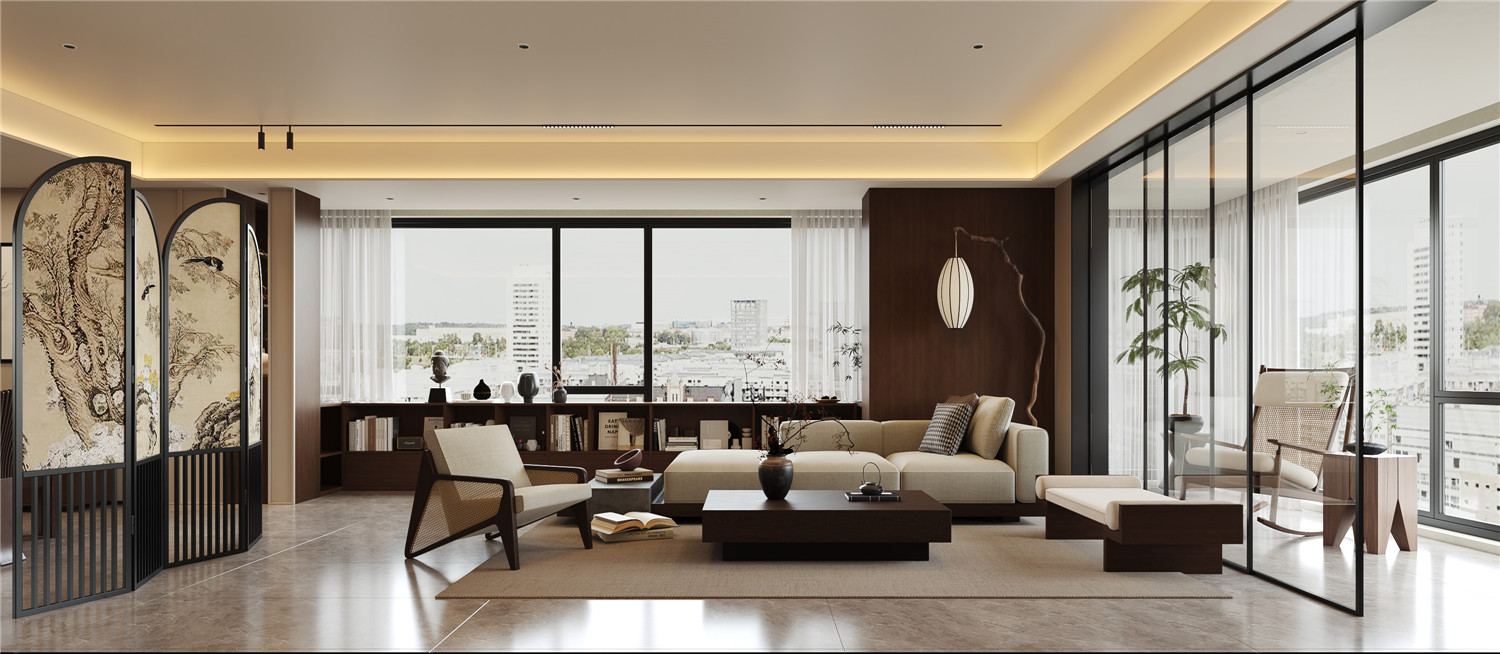 奶茶色的色調搭配了奶茶色的時尚沙發,就連墻上高大獨特的掛畫都彰顯出了現代簡約的狀態。