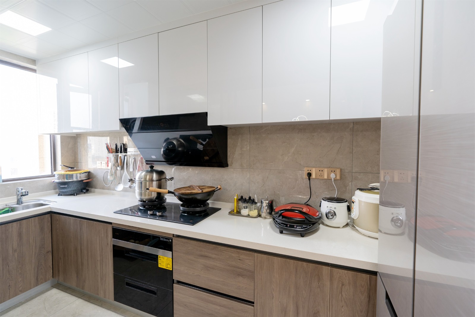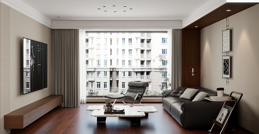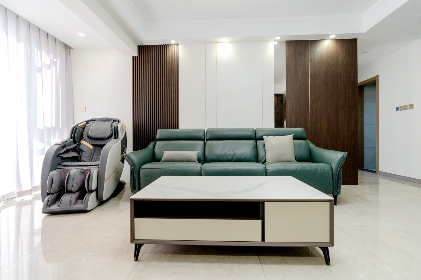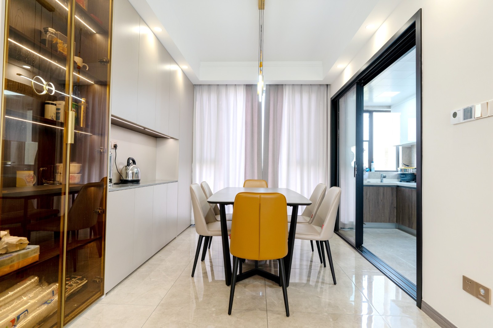 這套融創(chuàng)觀瀾府的四居室房屋建筑面積在143㎡左右,房屋的結構已經(jīng)有了雛形,且業(yè)主為了節(jié)約裝修花銷,提議設計師在原有的戶型結構上進行裝修設計。因此設計師保留了原有的功能結構,同時借助色彩、材質等軟裝元素為房屋進行“包裝”,以保障裝修效果。同時,為提升空間質感,設計師選用了大量“隱形”設計,如材質本身的紋理等,以起到在無形中裝飾空間的作用。