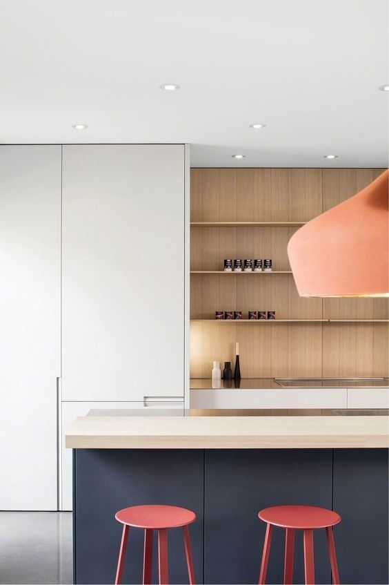 開放式廚房從收納角度而言,并不利于收納,這樣的格局需要從其他地方借用空間。這時候我們可以采用中島與之相搭配,兩者是對好CP,既能與家人互動,又能滿足收納的需要。