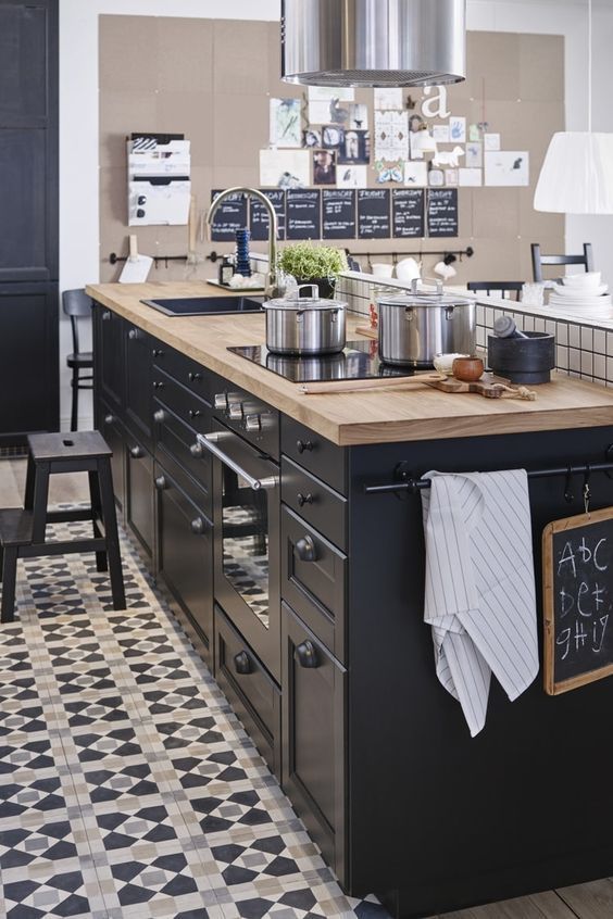 中島臺與主廚臺之間的距離寬度要留足120cm,才可以保證兩邊的櫥柜門同時打開。中島和主廚櫥柜的臺面寬度都至少60cm。中島的一側至少要留出90cm凈寬,保證一個人輕松通過。