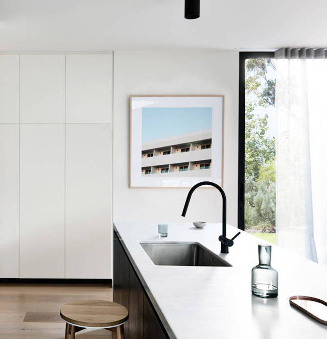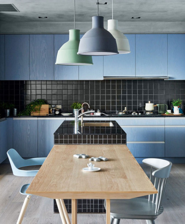 同時可以把中島與餐桌合二為一,沿著中島臺面延伸出一部分臺面作為用餐區,或者直接把中島當成臨時餐臺。