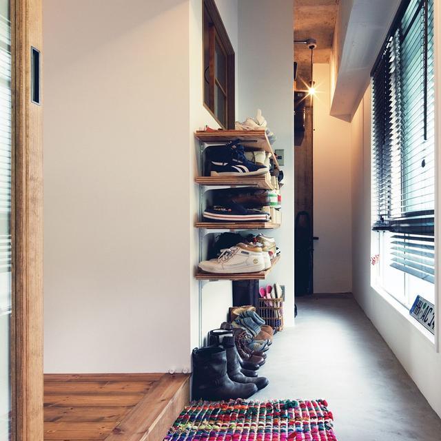 連做柜子的深度都沒有的玄關,只能用上擱板了。