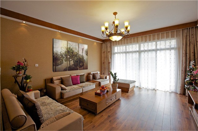 推薦:天花板和窗簾桿相連,整面墻會產生“落地窗”的感覺,非常大氣。