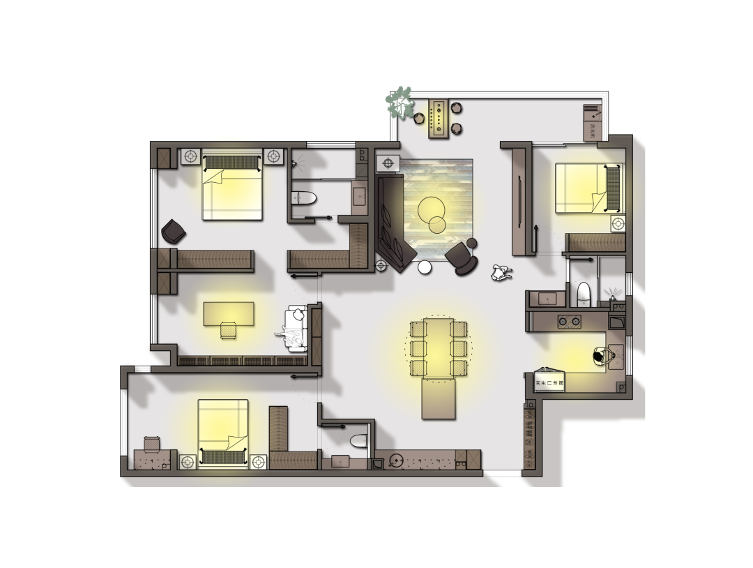 4 保留三間次臥,滿足多人口家庭;增設儲物間,滿足收納。