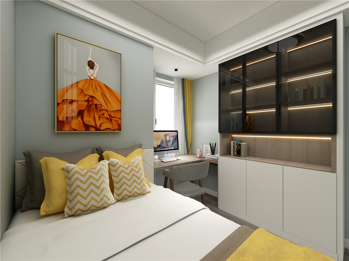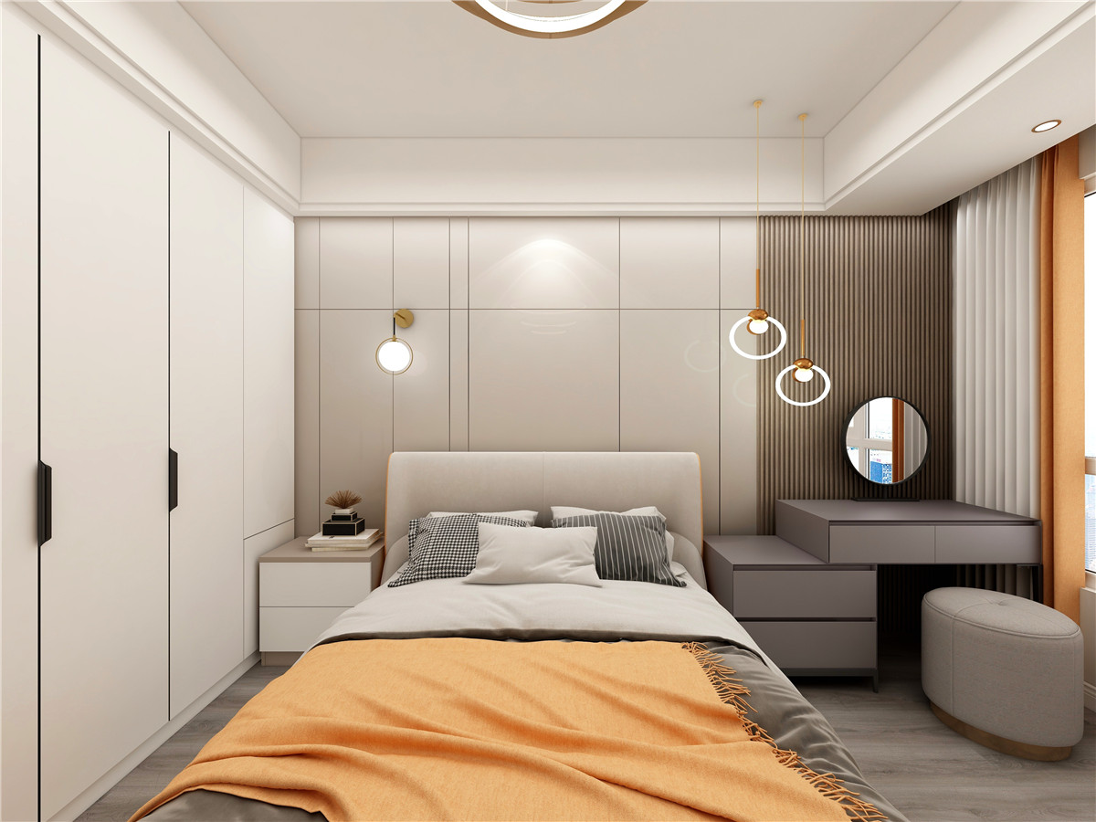 全房色調(diào)統(tǒng)一,視覺上舍棄張揚的造型,線條與色塊的巧妙運用營造出穩(wěn)定,協(xié)調(diào),溫馨輕松的空間氛圍,細節(jié)之處流露出精致的生活情調(diào)