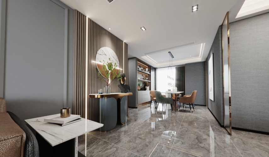 這是一套給年輕的精英夫婦設計的房子,風格簡約、和諧,為忙碌的年輕專業人士和成長型家庭而設計。簡約而精致的細節結合可以創造出極致的奢華感。這套住宅以輕松通透的色調為主,融合了微妙的中性色彩和獨特的照明、雕塑等令人眼前一亮的綜合設計元素。