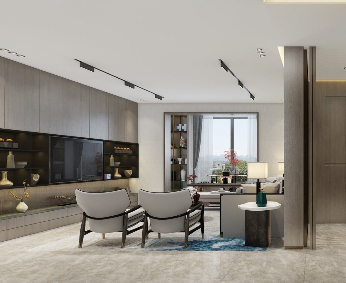 本案采用新中式輕奢設計手法來呈現,對原始戶型進行了局部的調整以來更加優化功能分區。整體色彩采用中性咖灰色系。材質采用復合石材及不免硬包、木飾面、天然石材、不銹鋼、乳膠漆等為主要材料。廚房利用隱藏式移門來滿足日常生活的各種場景。再設計和燈光以及質感為中心理念,圍繞宜居,舒適的生活環境為主導思想,從而呈現出業主滿意并且具備觀賞性及品位的居住空間