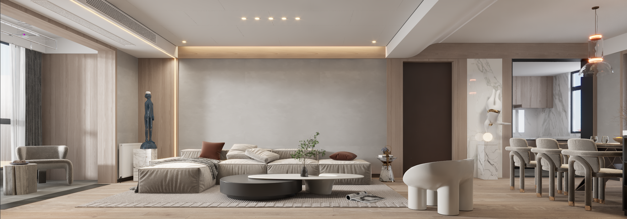 去掉沉悶的臺式格調,重新定義,淺色木飾面和加上細膩的手法,輕松自然