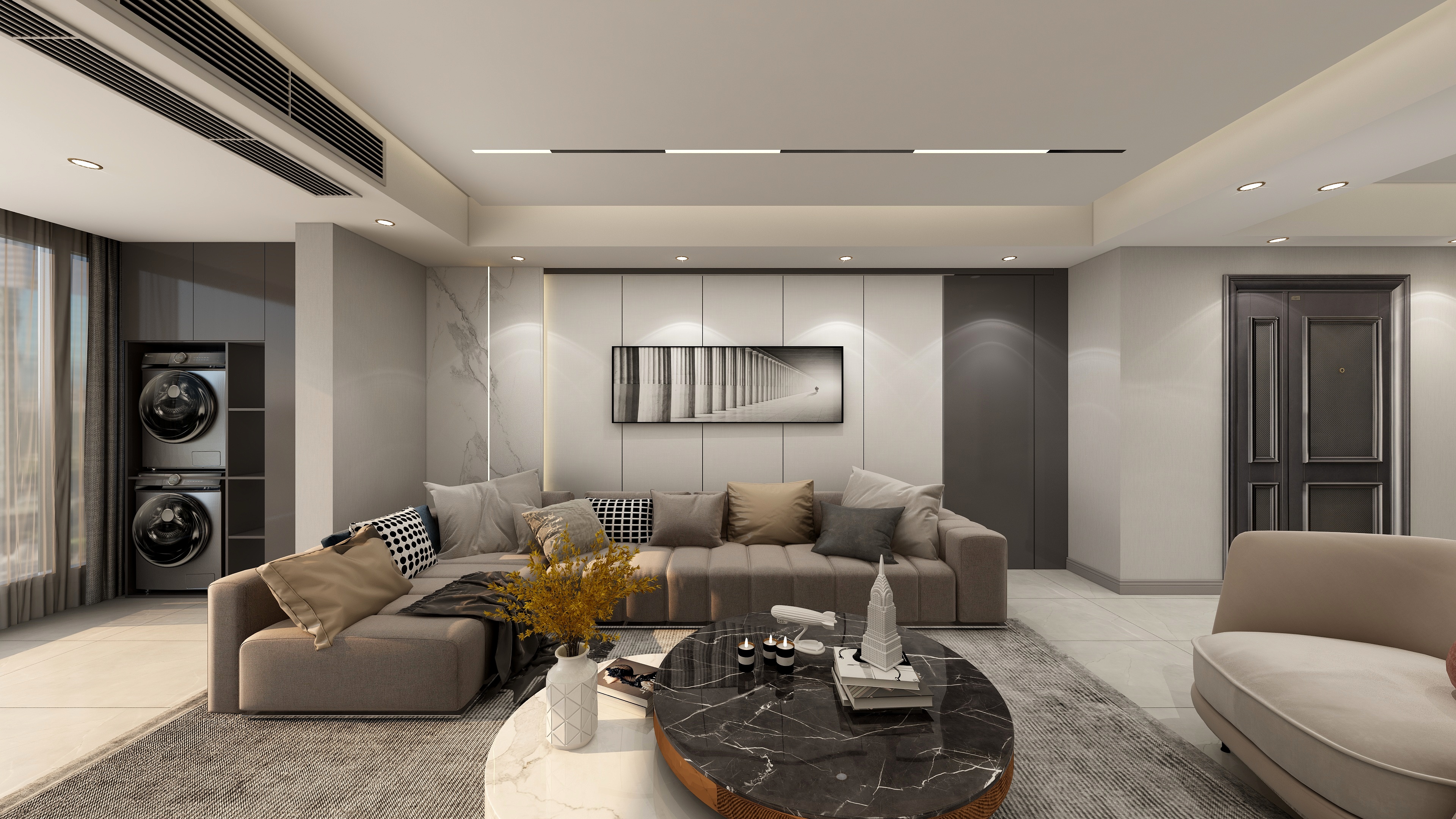 本案采用簡約的設計格調,利用材料本身特質,完美拼接,輔以燈具點綴,營造出空間層次感;而合理的空間布局規劃,讓家居環境更舒適、更宜居。
