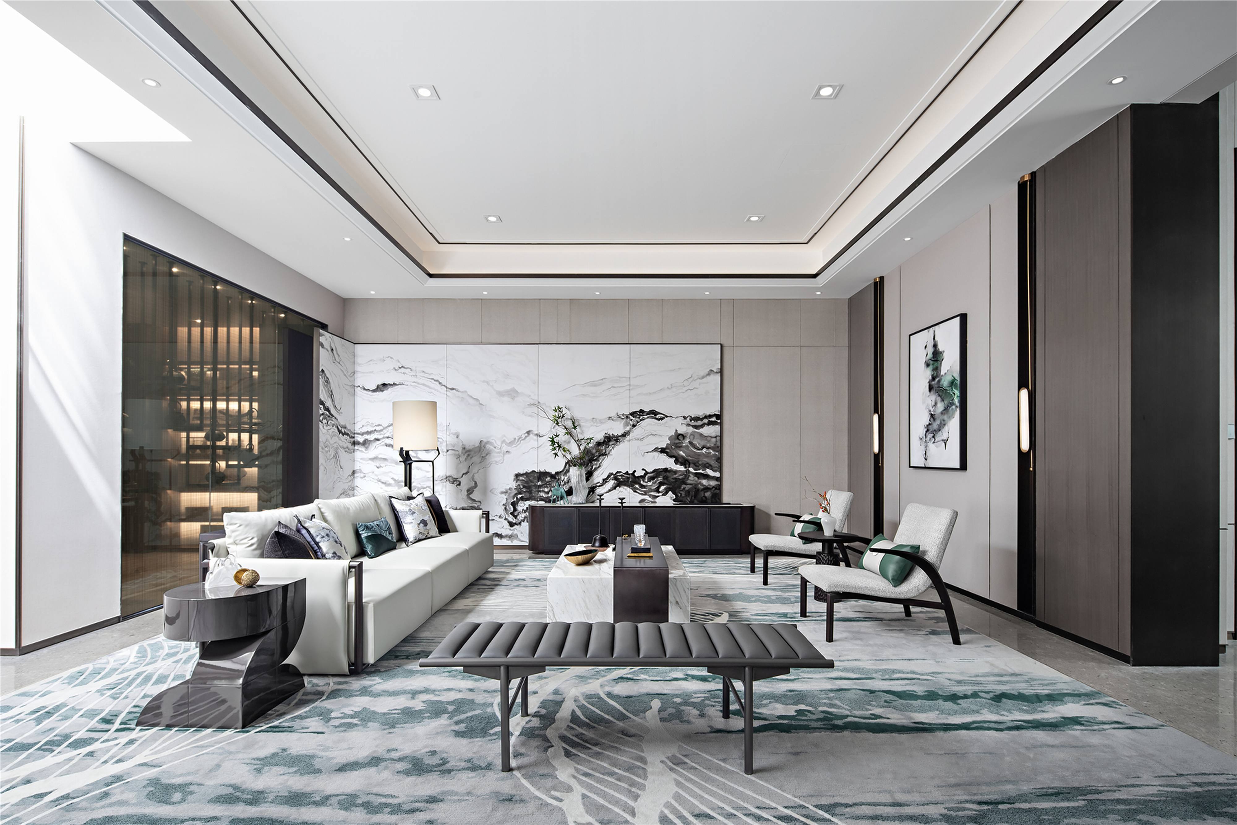 東方情懷室內設計說明: 本空間內的分隔界面多呈現出“退讓”的姿態,“進”,其實也是為了形成“退”,這些都符合東方人的思維習慣:在“退讓”和“遮掩”中內斂地表現“層次”和“深度”。又由于借用了鏡子,更加深了空間的層次,欲遮還掩的空間可令人產生一種期待中的美感。客廳公共通道的設計概念,取意于江南人家磚瓦房屋檐下的“走廊”,吊頂以隱藏空調風機,形成壓低的“屋檐”,地面爵士白大理石上鋪上東方意境的地毯。上下呼應則形成一種傳統的“灰度”過渡空間,可喚起人們兒時熟悉的回憶。