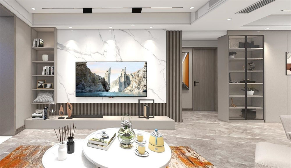 設計師以現代輕奢風為基礎,通過調整空間比例,讓每個空間都得到了合理的使用。沒有任何繁復的構造與裝飾,借用材料本身的紋理與質感,來充分體現業主的品質生活。