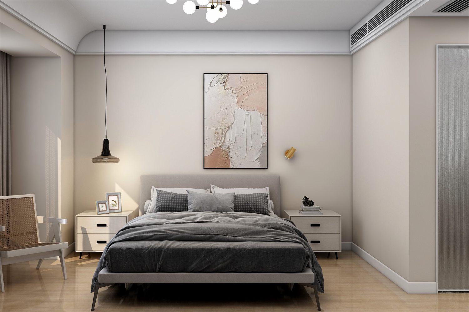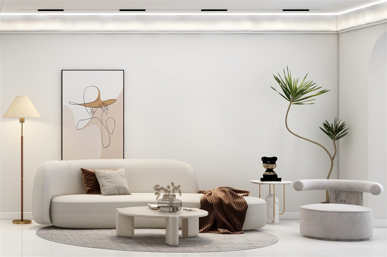 業主喜歡奶油系的空間配色,希望房子可以簡潔、溫柔、舒適,有藝術氛圍感。同時,還需有超大的收納需求。對此,設計師以北歐風為基礎,選取溫柔的奶油配色滋養空間的肌理,營造活潑治愈的溫柔家,給居住者歲月靜好的體驗感。