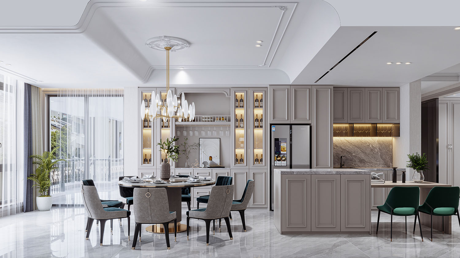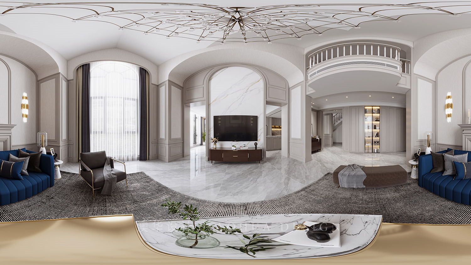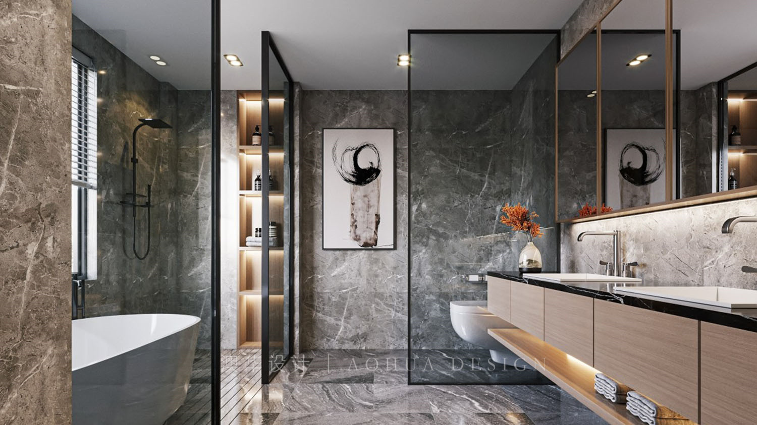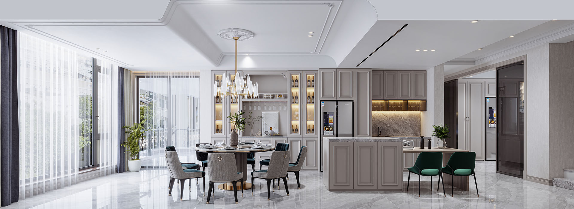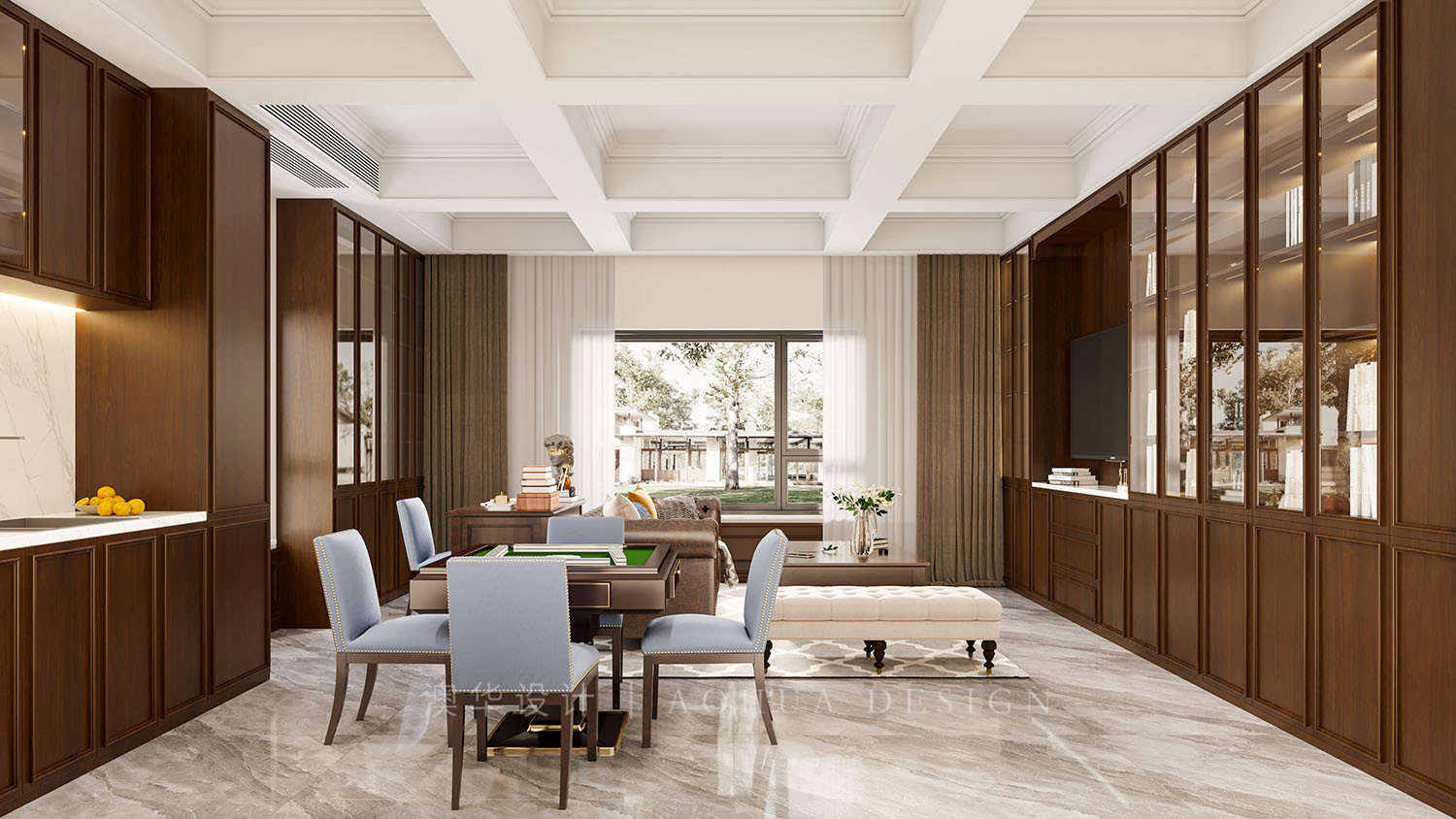 對于設計大宅來說,讓居者的生活更豐盈,人與人之間的情感互動才是本案的研究重點。客廳及餐廳玻璃窗,使庭院可游,可觀賞,室內外的生活相互延續,讓“自然”入室的理想生活狀態。