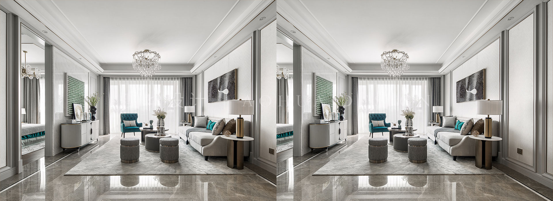 說到“法式”,它帶給人的感覺是優雅、品質、兼容、無限自由,是一種不拘于形式的浪漫格調。整個空間規劃了客廳、書房、餐廳和三間臥室。設計過程不追求刻意的奢華,力圖通過細節呈現一個全新的現代法式居所。