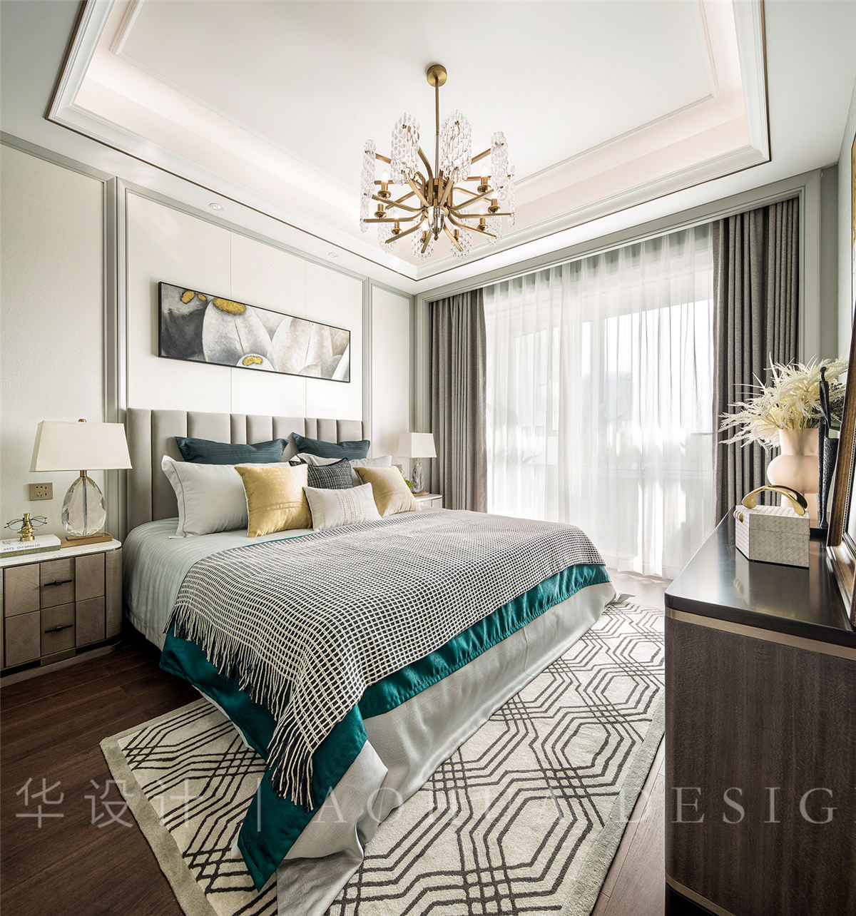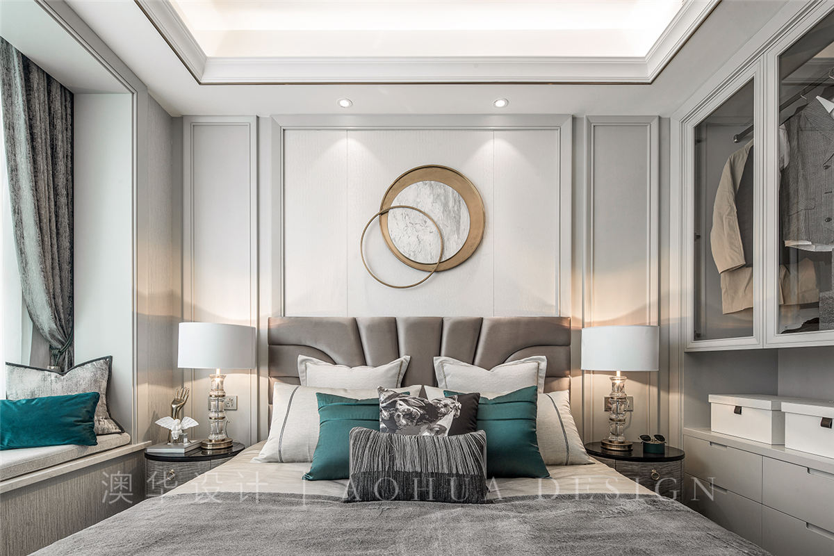 • 臥室就更加顯得安靜舒適,自然的木質搭配淺色平衡美感。墻面精細美觀的幾何元素裝飾,在燈光的裝點下隱秘感中包含輕奢,營造良好出睡眠氛圍。
