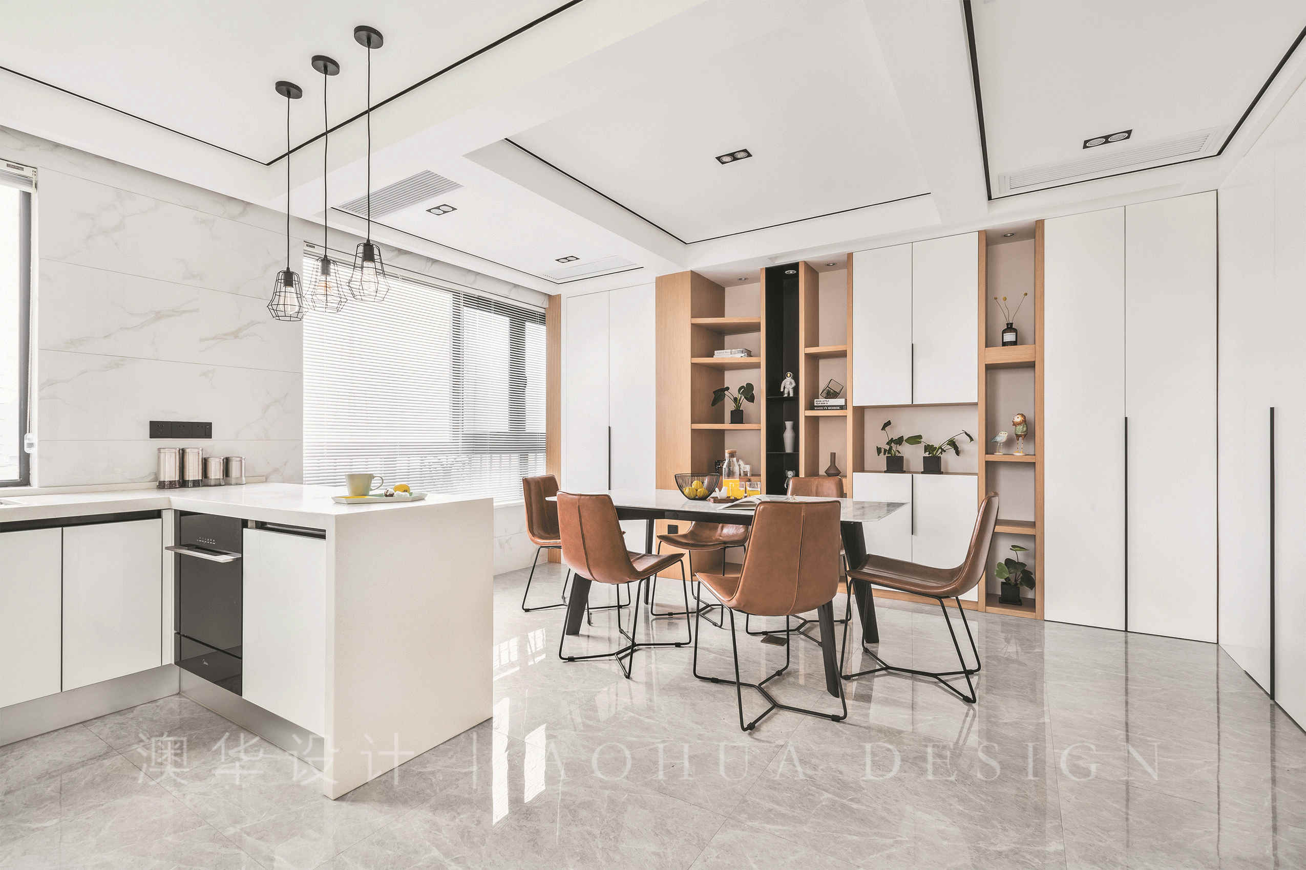 • 業(yè)主對餐廚空間的重視最終體現(xiàn)在了成品設(shè)計上。貫通的餐廚設(shè)計賦予了居者對于生活更多的想象空間。無論是在案臺烹飪美味,還是在吧臺讀書小憩,亦或是在餐桌上推杯換盞,在這里都能找到適合你的生活場景。
